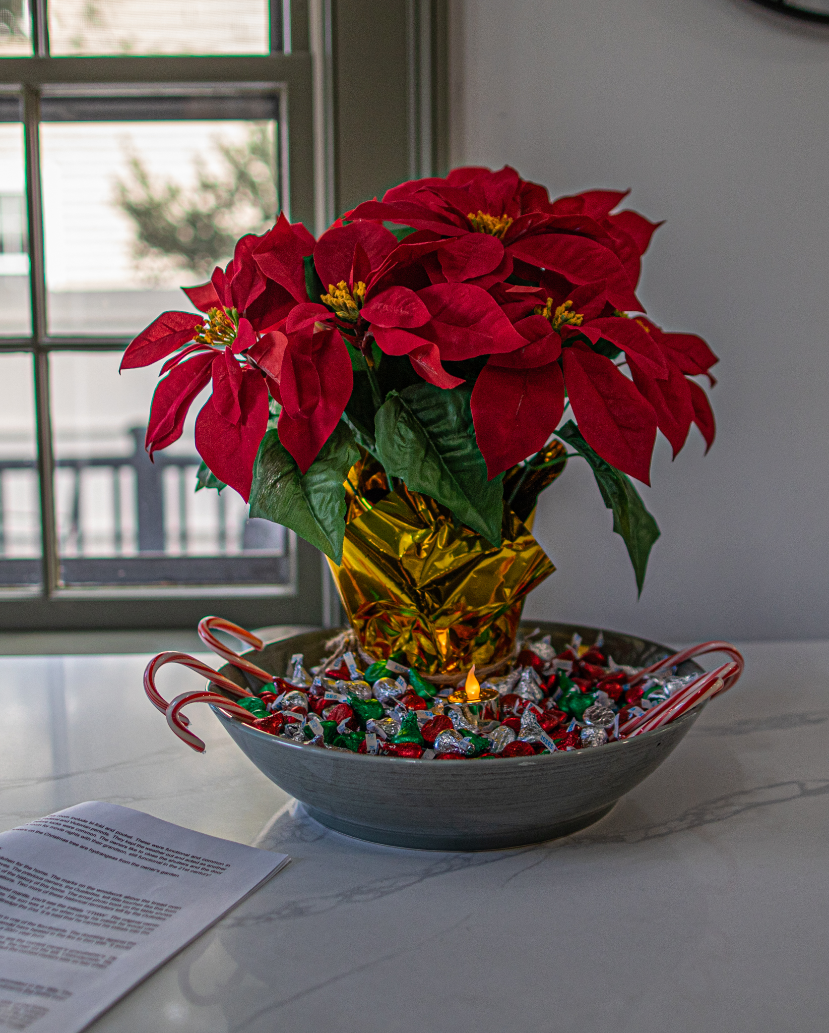 And what holiday home would be complete without a poinsettia! The best part were the free treats in the bowl!