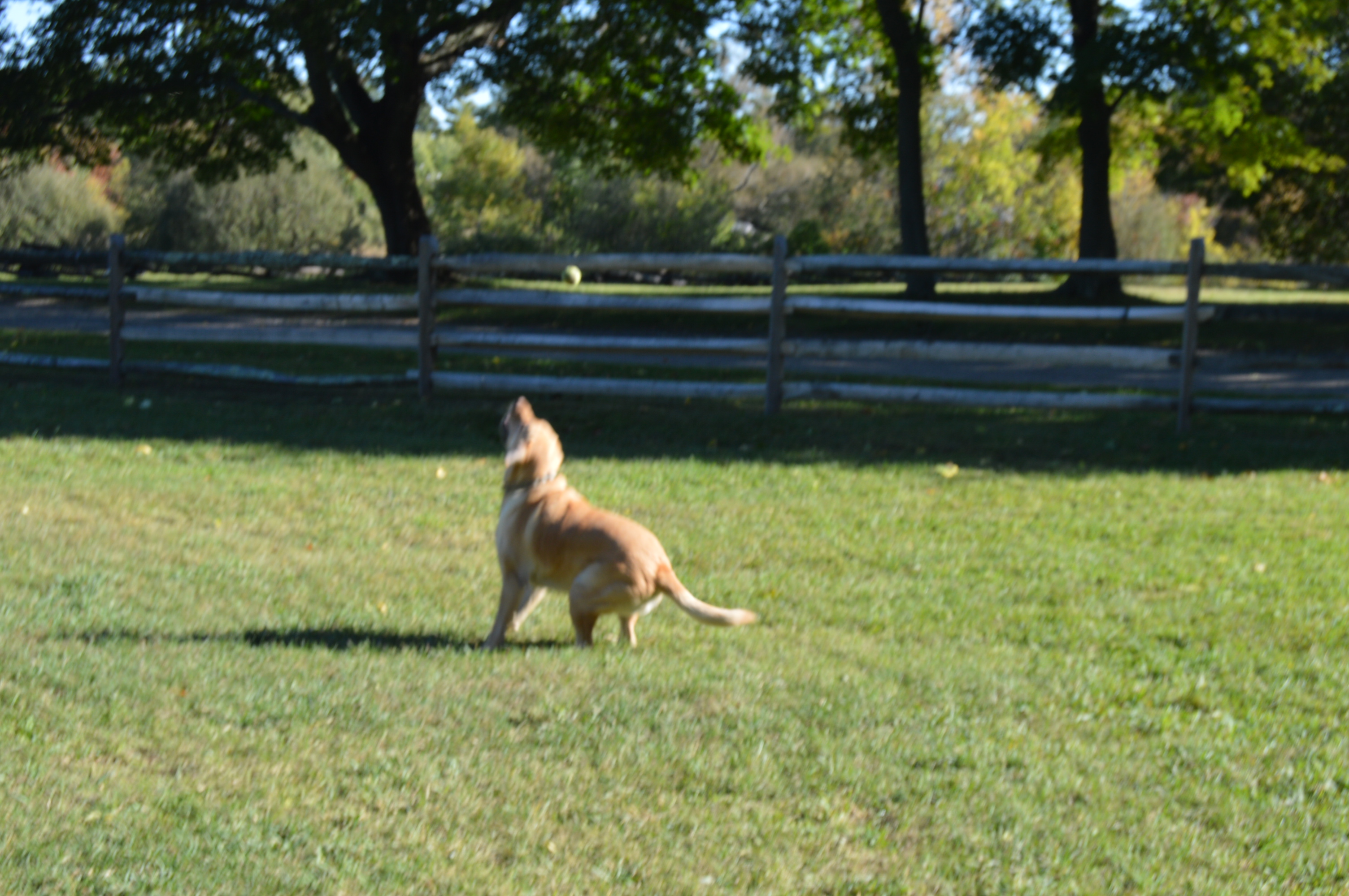And I met a bear.  Well, sort of.  One of the workers was dog sitting and he brought his Golden Lab, Bear with him to the homestead.  Bear likes to play catch.
