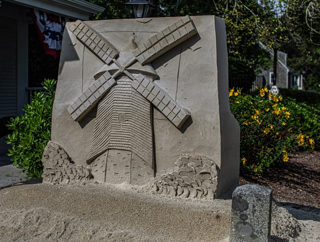 Since it is the 250th anniversary of the beginning of the American Revolution, there were sand sculptures representing the revolution. Fittingly, one of the sculptures, which was lighted up for my early morning visit.
