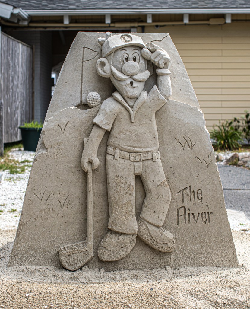 Although, it’s not clear, this sculpture may be a nod to mental health and the prison it can create in people as this is similar to a work he created at the Hampton sand sculpture festival called “Imprisoned” which was about mental health and the barriers it can cause.