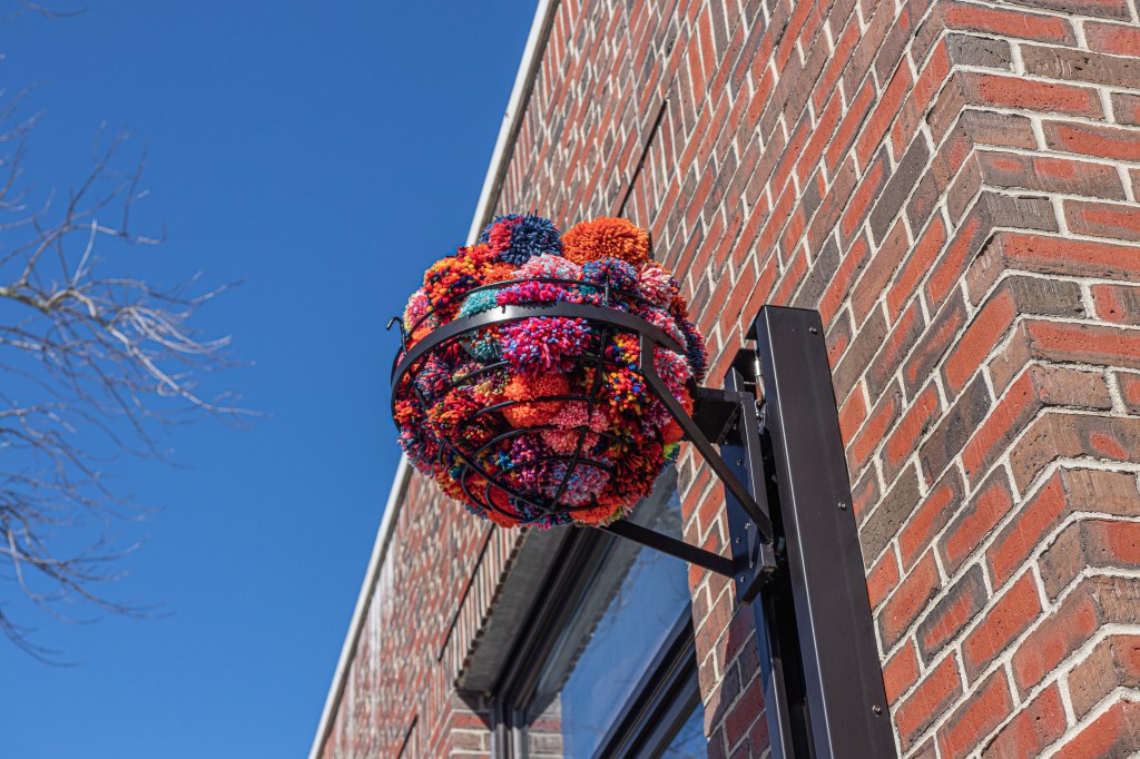 More than 25 works of art and over 2,000 pom poms were draped upon benches, trees, statues and poles around the garden.