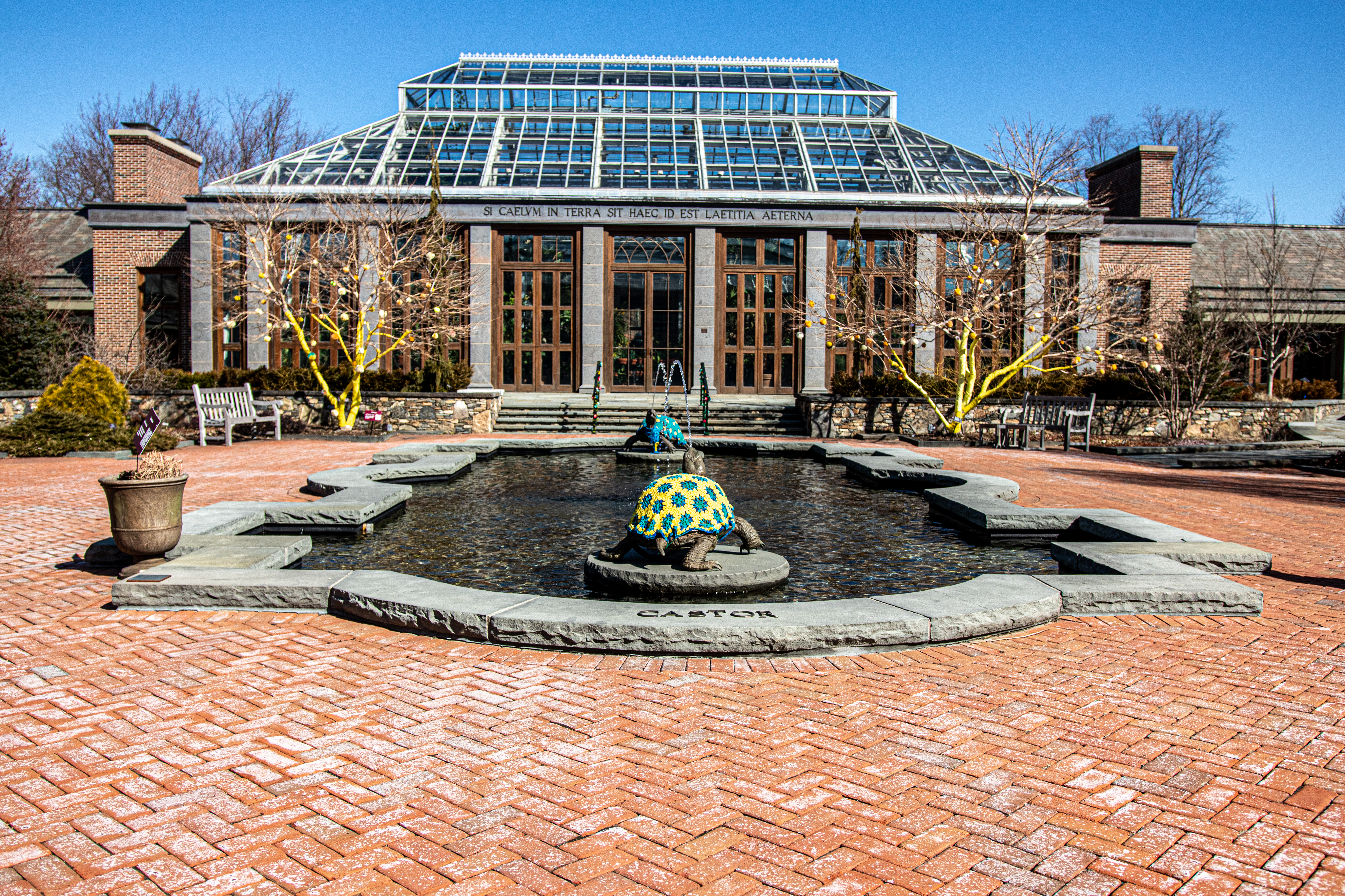 The knitted art isn’t just on the trails outside of the botanic garden. Castor and Pullox were also dressed up for the event.